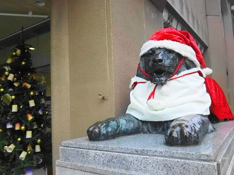 三越のライオン像もサンタバージョンになっていました。入り口にはツ...