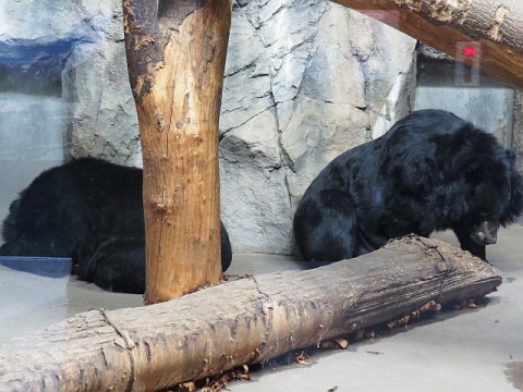 ヒマラヤグマのミナミとトモの放飼場でも工事が始まっており、外に出...