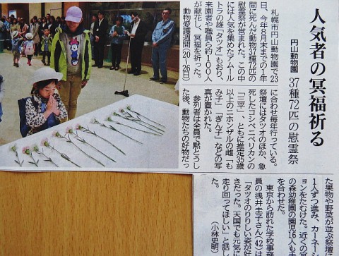 今朝の北海道新聞札幌版に昨日の動物慰霊祭の記事がありました。雨天...