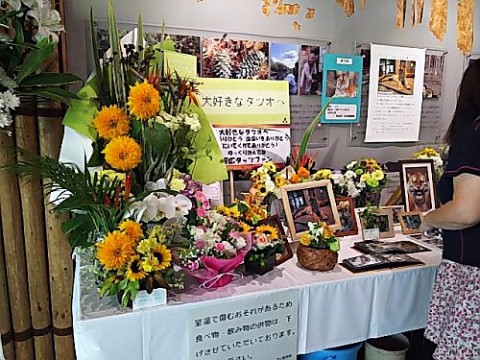 今日のタツオの献花台です。札幌は連日暑さが続いておりお花たちは大...