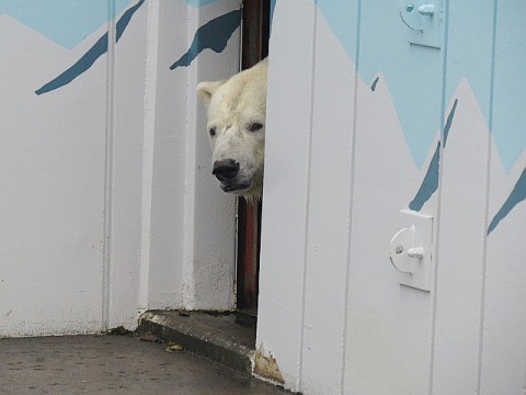 ココアの屋外獣舎前の貼り紙。釧路公式にもありますが、背中に小さい...
