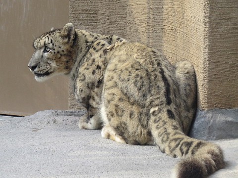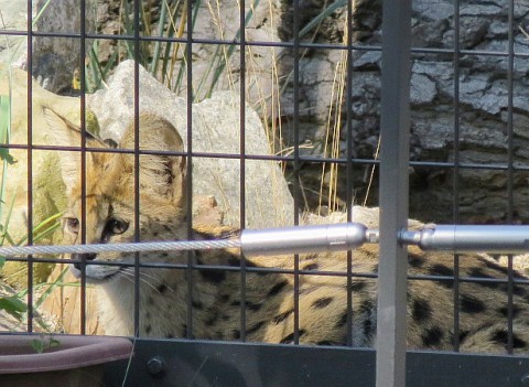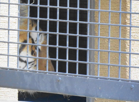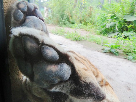 ガラスに足をかけてお休みのアイ。この足だけでかなりの来園者サービ...