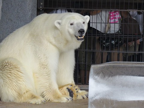 30.7℃まで上がった旭川。ホッキョクグマのところには氷柱が置い...