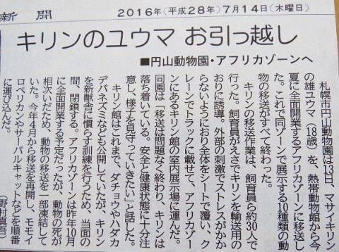 今朝の道新記事(札幌版)です。ユウマを最後に熱帯動物館からアフリ...