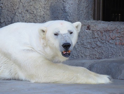 今日も3時半近くになって外に出てきたタツオ。寒帯館の観覧スペース...