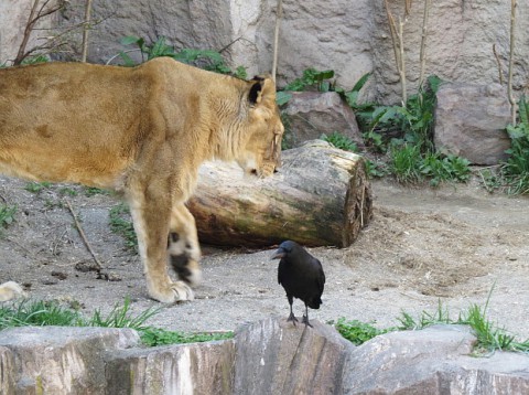 カラスの向こうを通るティモン。カラスはちょっと警戒していましたが...