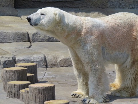 一昨日22日、メイン放飼場のアクバルです。丸太の欠けた部分を齧っ...
