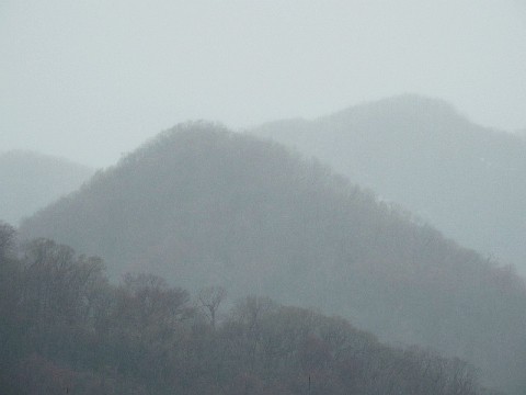 正午の気温は9.8℃。午前中は雨と風で肌寒い日に。遠くの山々もど...