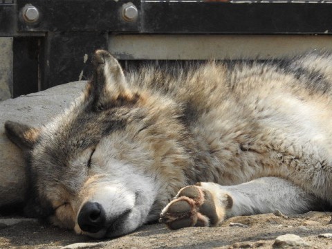 可愛い顔でおやすみのリッキー^^ティモン奥さまは丸太の上。片目は...