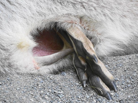 お母さんカンガルーのおなかの袋から赤ちゃんの足。順調に育っている...