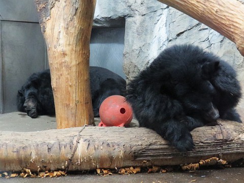 今日はなぜか放飼場への扉が閉め切られ、狭い展示室で過ごしていたヒ...
