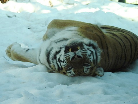 雪の上で気持ち良さそうにゴロゴロするアイ。タツオが寝室に収容され...