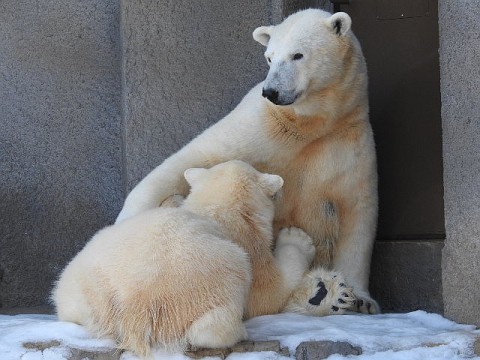 この場所で最後の授乳となったのでしょうか。閉園後にお引越しの親子...