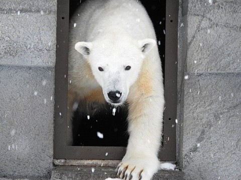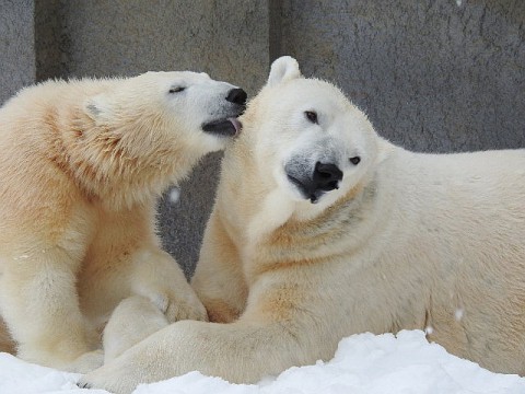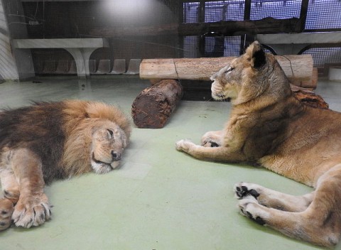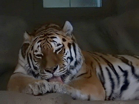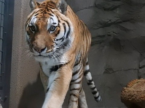 室内展示室は久しぶりのアクバル。ずっとメスたちが交替でここにいま...