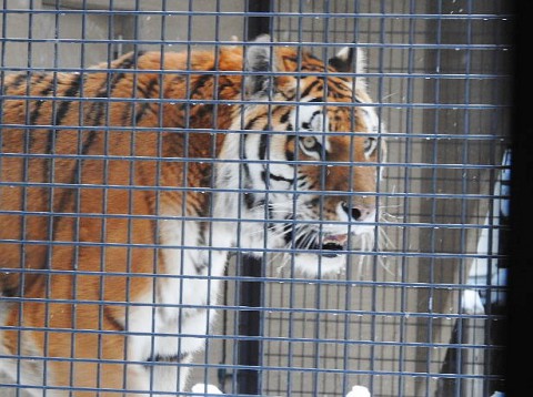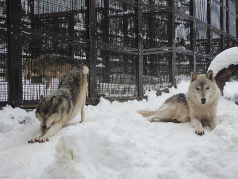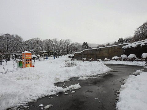 重たい湿った雪が積もりました。もうすぐこの展示場から移動するララ...