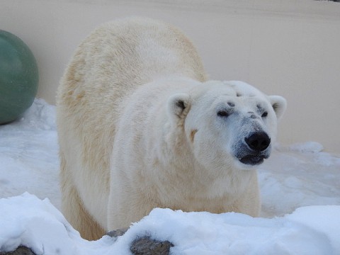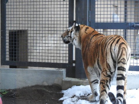 赤い雪かきを持って海獣舎のほうまで雪はねに行った担当さんをずっと...