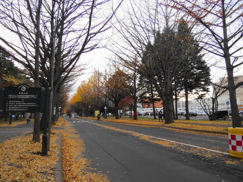 今日の北大イチョウ並木。ほとんど散りました。あとは雪を待つばかり...