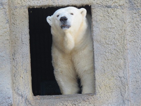 タツオは朝3キロのミンチを食べてからご出勤。来園者を観察しながら...
