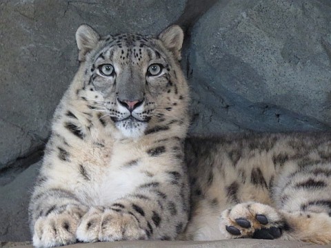 お昼寝に入る前のリアン。ユキヒョウたちは冬に備え被毛がだいぶ密集...