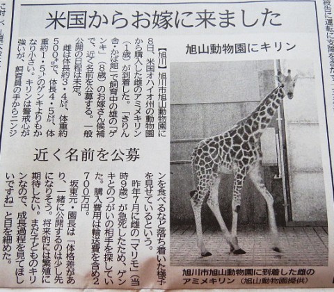 道新記事より。こちらは明るい話題。旭山動物園にアメリカからアミメ...
