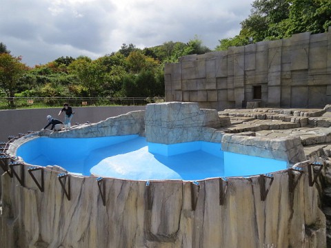 今日のララ邸。プールのふち改修工事も最終段階でしょうか。担当飼育...