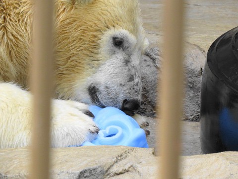 檻の部屋でおもちゃ遊びのリラ。ララは室内に入っていて逢えませんで...