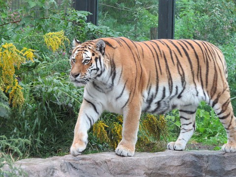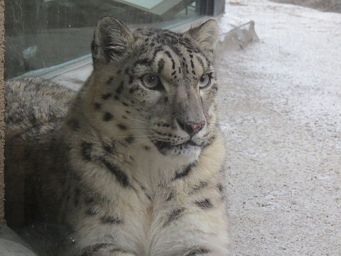 雨を避けてガラス前に座っていたリーベ。擬岩の上からリーベを狙うリ...