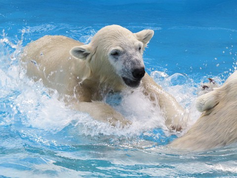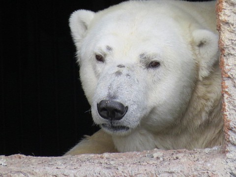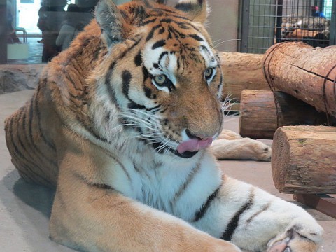 室内展示室からじっと外を見ていたリーベ。見られていたのはメイン放...