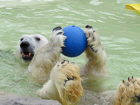 ララやリラに負けず、デナリも玩具ではしゃいでいました。ブイを何度...