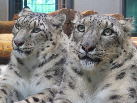 親子寄り添って放飼場のシジムを見ていた昨日のリーベ(左)とリアン...
