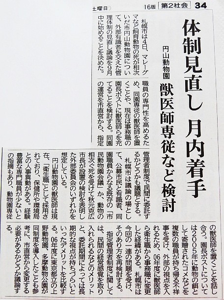 今朝の北海道新聞記事です。いよいよ体制見直しに向けて札幌市が動き...