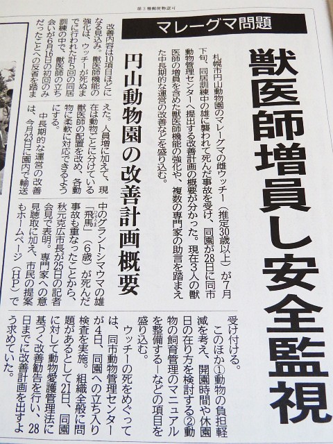 ウッチーの死亡事故を受けて動物管理センターから改善勧告が動物園に...