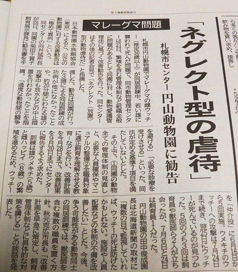 昨日の北海道新聞記事より