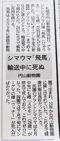 今朝の北海道新聞記事より。夕べ飛馬の死というショックなニュースが...