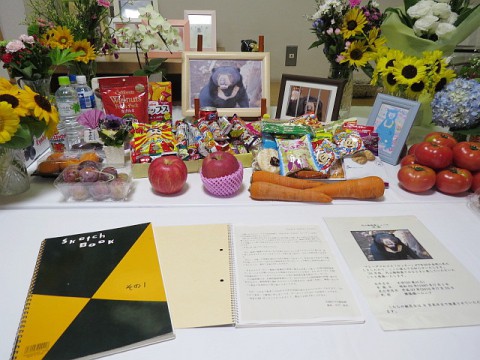 今月末まで設置されているウッチーの献花台。整理整頓がなされ花瓶の...