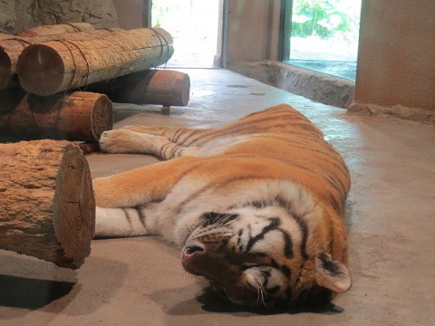 展示室内ですやすや寝ていたタツオ。お疲れのようでした。いつもなら...