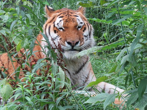 「あれ?トラいない…」とお客さんたち。タツオは伸びた草の中で寛い...