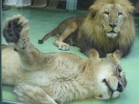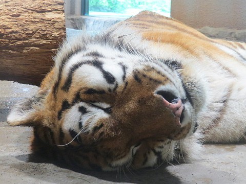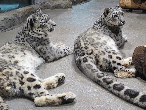 室内展示室当番のユキヒョウは依然として寝室に帰してもらえないため...