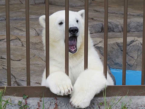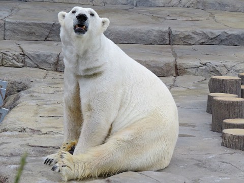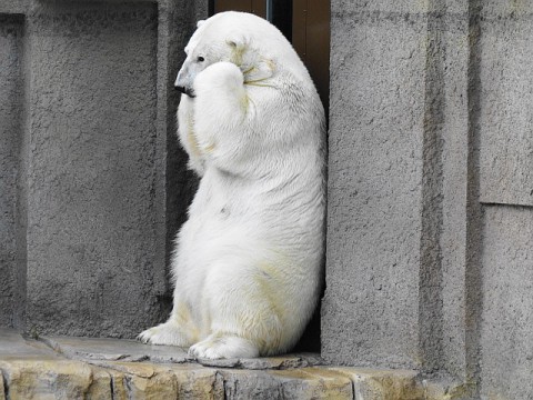 ホッキョクグマのこんな座り方、大人グマでも可愛らしいです。座布団...