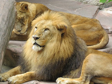 寄り添って休んでいた午後のライオン夫婦。と、突然揃って視線がこち...