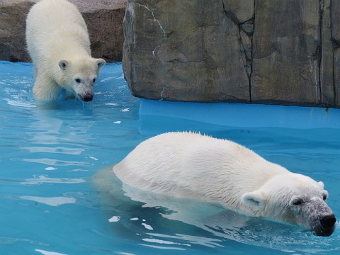 ララに付いてプールに入るかな?と思わせるコグマでしたが・・・ここ...