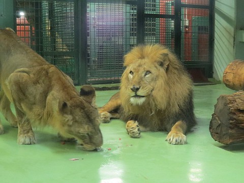 お食事中だったライオン夫婦。正確に言うとティモンが咆哮している間...