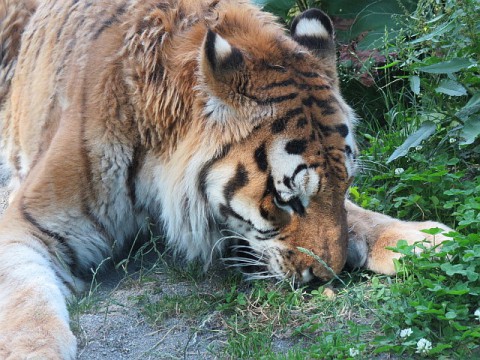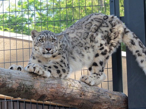 夕方、活動を開始するリーベ。まずは伸びをしてから。後ろから甘えん...