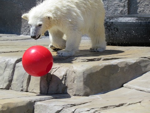 赤いボールにはじけるララ