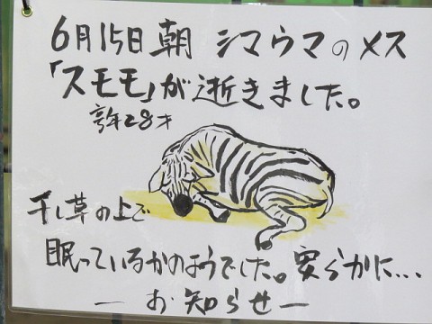 グラントシマウマ『スモモ』の訃報