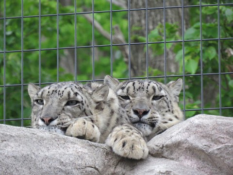 擬岩の頂上でぴったり寄り添って休んでいたリーベ(右)とリアン(左...