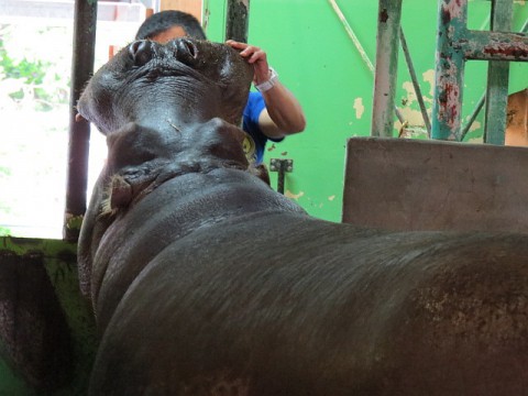 担当飼育員さんにお口ア~ンしていたザン。アフリカゾーンへのお引越...