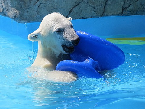 3時近くに行ってみるとコグマはねむねむ。プールでたくさん遊んだの...