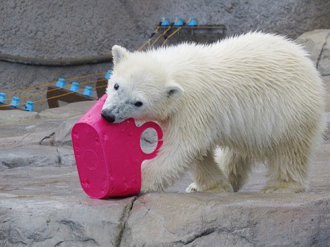 プールの監視員のようにララを見ているコグマ。ララはコグマの好きな...