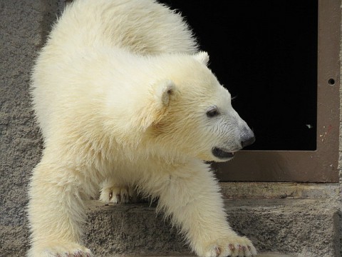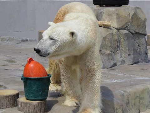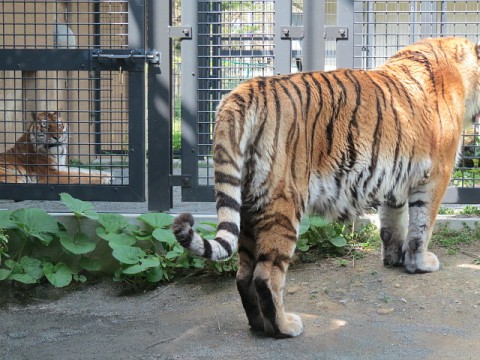 メイン放飼場を力強く歩くアイ。タツオのことが気になるようで見に行...